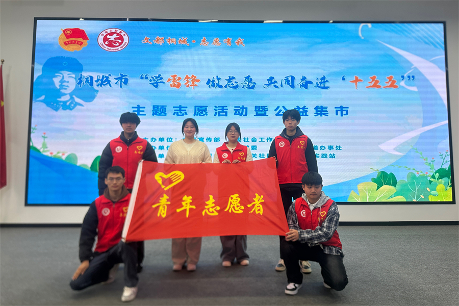 我校匠心蒲公英志愿服务队参加桐城市“学雷锋、做志愿、奋进‘十五五’”主题志愿活动暨公益集市,姚棋同学作为志愿者代表上台分享志愿心得。