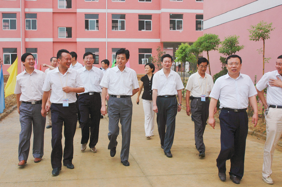 安徽省人民政府原副省长谢广祥(前排右二)来安徽桐城高级技工学校视察指导。