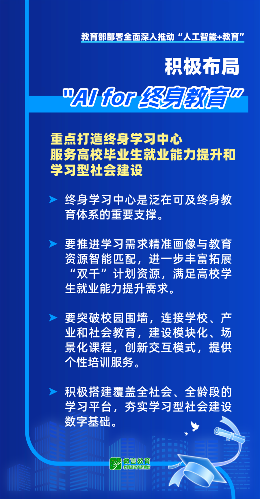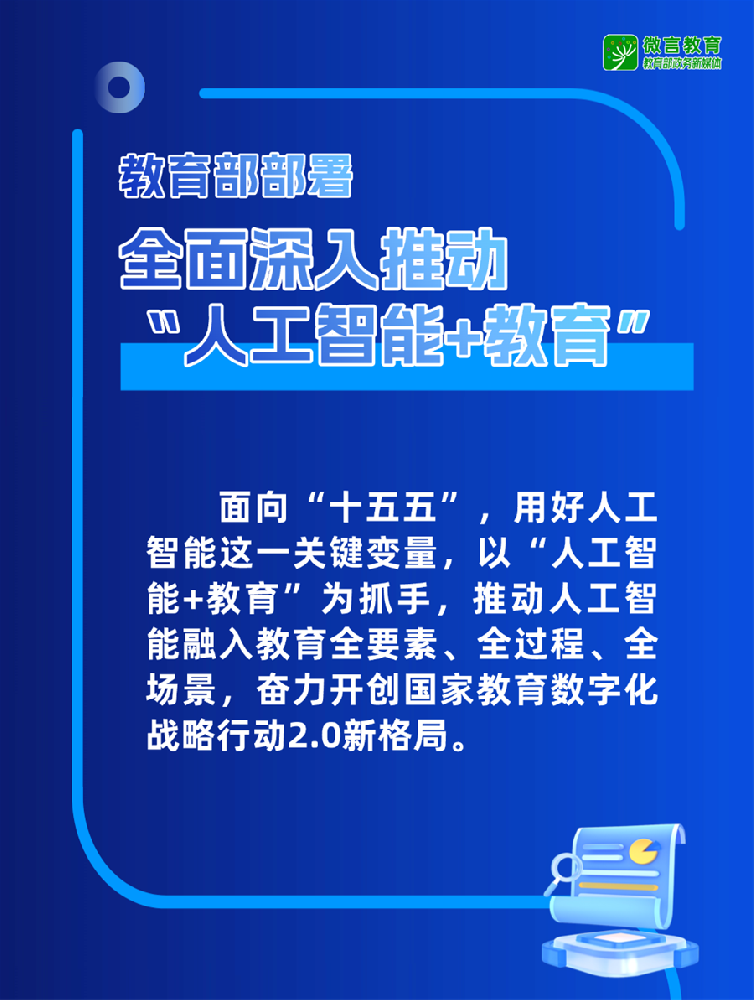 近日,教育部召开国家教育数字化战略行动2026年部署会。面向“十五五”时期,教育部部署全面深入推动“人工智能+教育”,有哪些重点工作?一起来看——