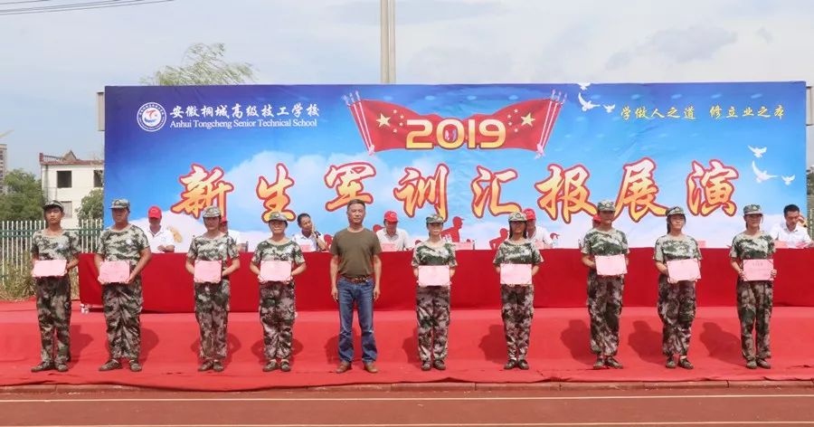 8月27日上午,桐城高级技工学校2019年秋季新生军训会操表演暨表彰大会在学校大操场隆重举行,2019全体新生及各区队(班级)分别作出了精彩的军训成果汇报展示。